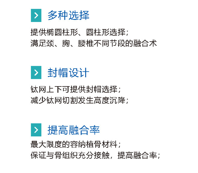椎體融合器由鈦網(wǎng)、端蓋、端蓋螺釘組成。椎體融合器的鈦網(wǎng)部分可單獨使用也可選擇與端蓋配合使用。與脊柱內(nèi)固定系統(tǒng)聯(lián)用,用于椎體切除手術(shù)中頸椎、胸椎和腰椎的椎體替代。注冊證號:國械注準20223130697